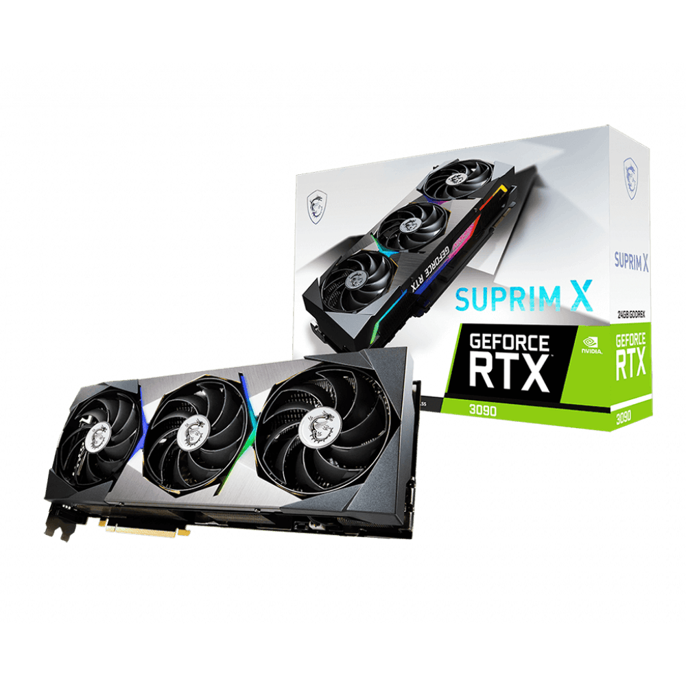 Card màn hình MSI RTX 3090 Suprim X 24G thuộc series Suprim là mỗi VGA mới nhất của dòng RTX 3090 hoàn toàn mới của MSI. Được đầu tư toàn bộ tinh hoa, Suprim là line-up card đồ họa cao cấp nhất của MSI, đi kèm với đó nhân RTX 3090 cho khả năng chơi game 8K, max setting và Ray Tracing dễ dàng.